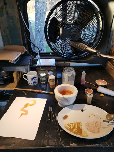 À la découverte des ingrédients naturels et ancestraux pour la fabrication d’une aquarelle écologique et durable à travers le temps! Démonstration sur plaque de marbre, à la molette, nous permettant d’obtenir un médium artistique offrant une couleur riche et profonde.
